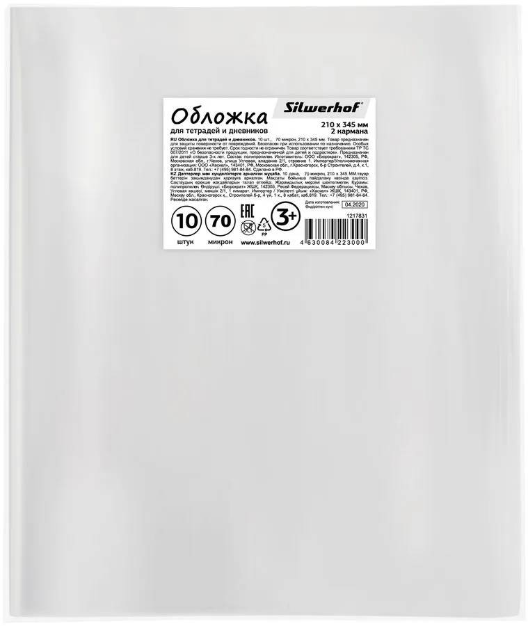 Обложка Silwerhof 382162S, для тетради/дневника, набор 10шт, ПП, 70мкм, гладкая, прозрачная, 210x345мм